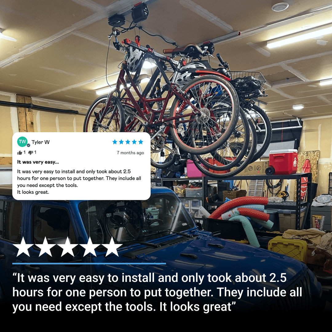 Builders/Contractors: Overhead storage racks offer builders and contractors an efficient solution for storing and organizing outdoor gear in garages and workspaces. These racks free up valuable floor space, making it easier to maintain a clean, functional environment while showcasing your expertise in maximizing space. For custom builds or renovations, overhead storage adds a practical and high-quality feature that clients will appreciate, helping to increase the overall value and functionality of the project.