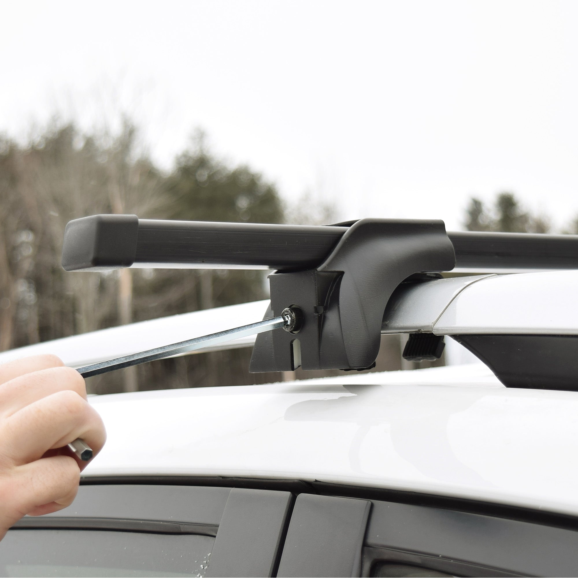 For cars with roof rack bars, it’s all about feeding the straps around the bars and your paddleboard in the right direction for max security. You’ll have 2 straps, one in front and one in back. Start with the clamp end of the first strap on the outside of the board, underneath the roof rack bar. Run the strap across the top width of the paddleboard to the other side of the board, underneath the rack bar, and back along the width of the board. There it will meet the clamp end and you will tighten appropriately. Tie off the excess strap and give your paddleboard and the straps a couple of pulls to make sure nothing is loose.
