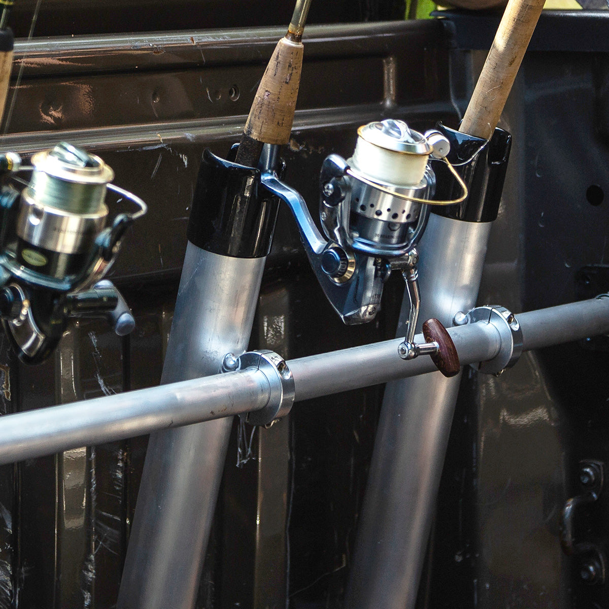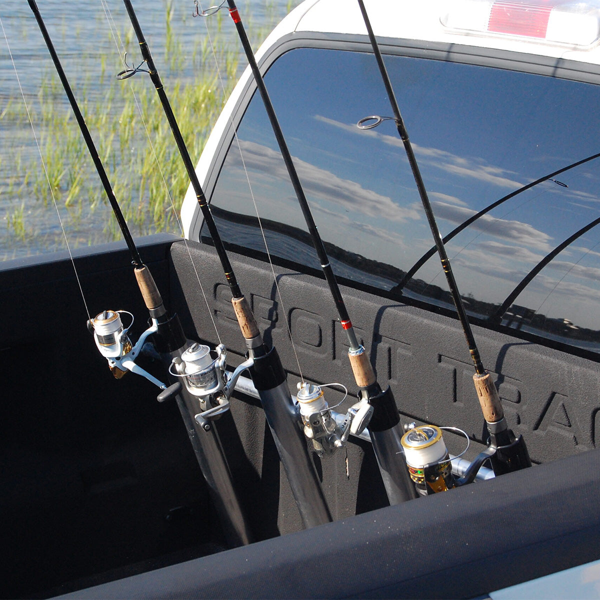 Designed to fit truck beds from 53" to 84" wide, the crossbar mounts securely against the cab wall. Each rod holder adjusts for angle and spacing, so you can continue to use your truck bed.