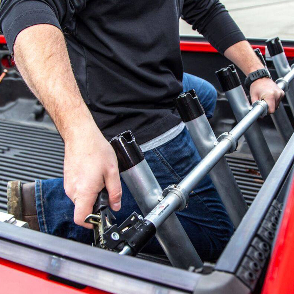 The pressure-mounted design eliminates the need for drilling, making installation quick and easy. Extend the crossbar to fit your truck bed, lock it in place, and load your rods for secure transport.