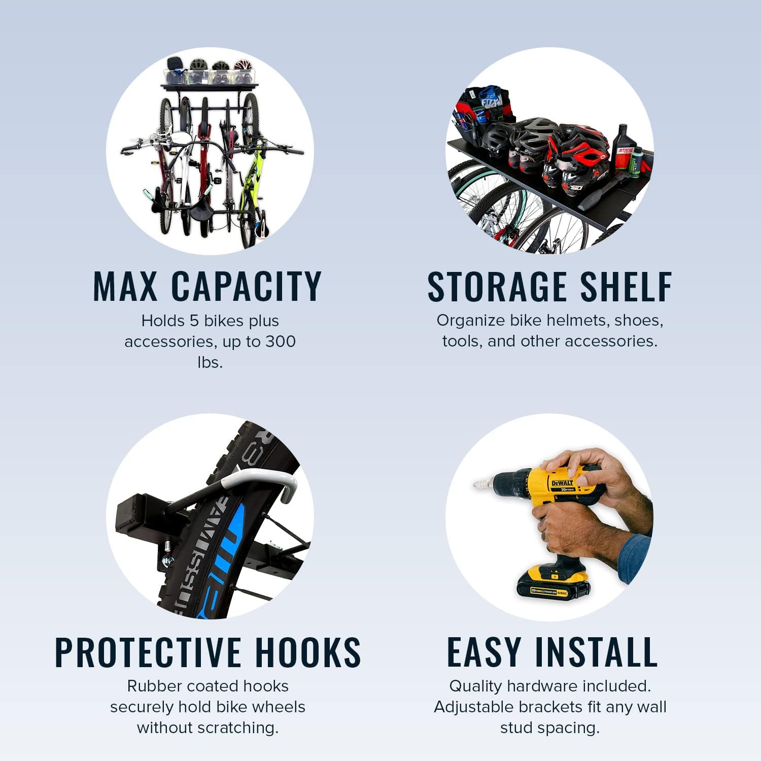 G-Bike Solid Shelf Wall Storage System | Holds 5 Bikes