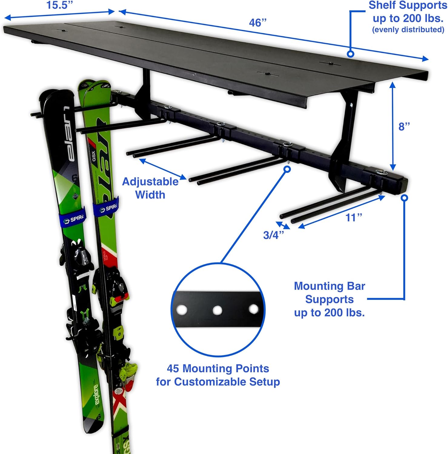 Solitude Ski Solid Shelf | Adjustable Wall Storage System | Holds 10 Pairs of Skis