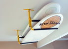 Expandable ceiling rack for SUP's and surfboards. With a flat, low-profile design of boars, the ceiling in your home makes for the perfect place to get your boards up and out of the way.