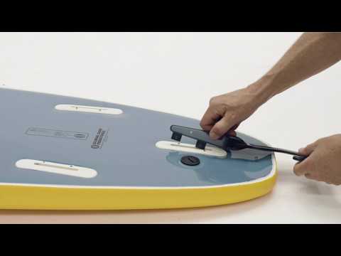 surf hanger that uses fin to secure surfboard to display and store surfboards...