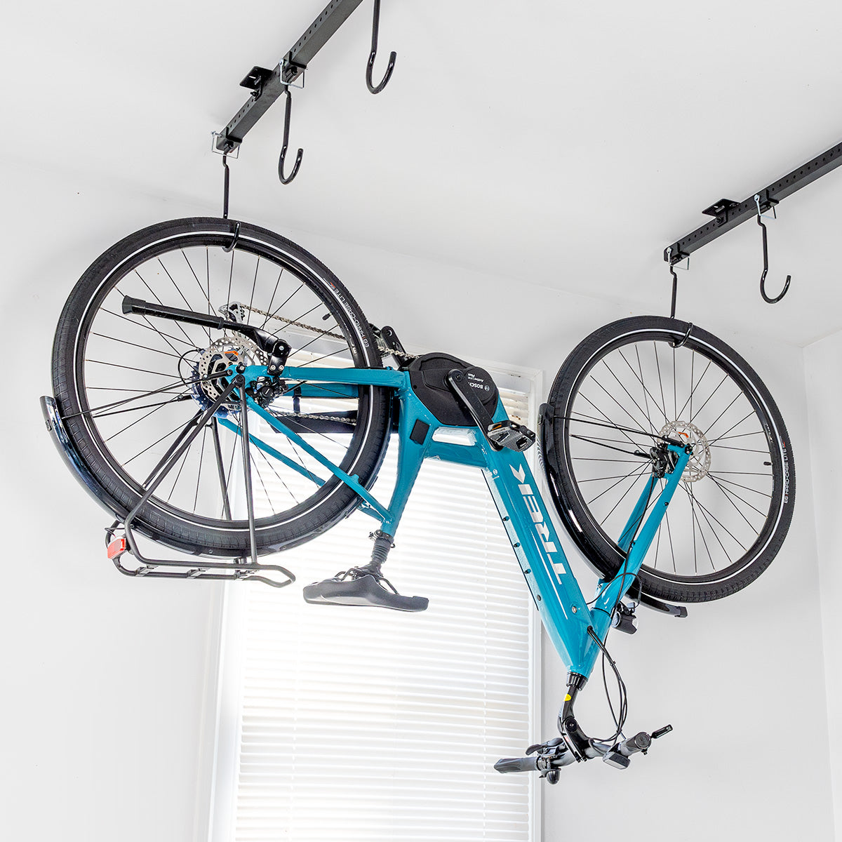 Elevate disorganized bikes overhead, and reclaim your walkways, storage spaces, and even your car’s parking spot. Perfect for mountain bikes, road bikes, gravel bikes, e-bikes, and more.