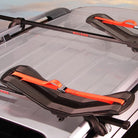 The Malone SeaWing V-Cradle is an aerodynamic kayak roof rack transportation system. The carrier is a center-mounted, deep-V style rack that holds your boat with its hull down.